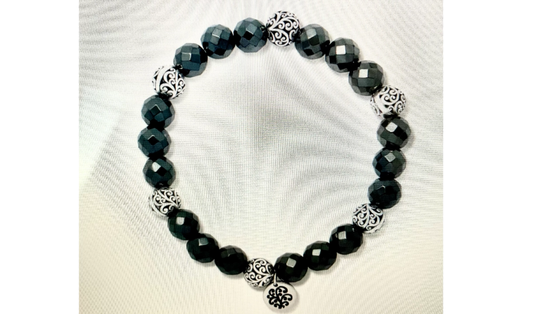 Lois Hill hematite bracelet with 8mm scroll beads in .925 sterling silver